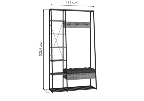 Сиденье с мягким элементом из кожзама, съёмная металлическая полка для обуви.
