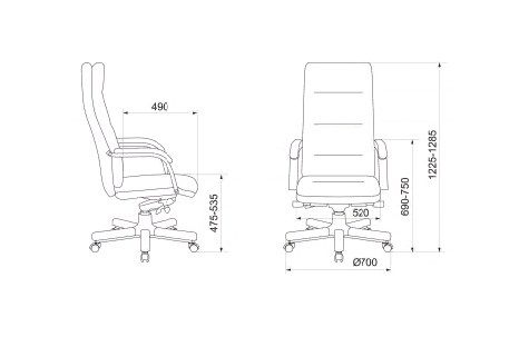 Высота с подлокотниками: 690-750