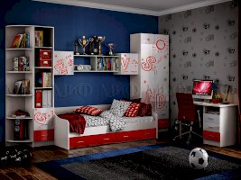 Кровать с ящиками Вега Алфавит красный (Миф)