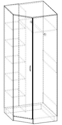 Шкаф распашной угловой 1 дверь со штангой и полками