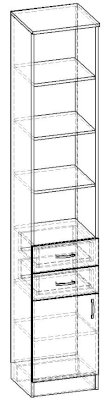 • Стеллаж 1 дверь 2 ящика Горизонт