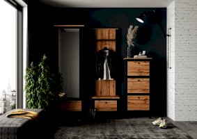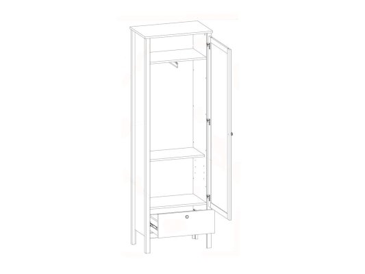 • За фасадом с зеркалом установленЫ: полка  с металлической выдвижной штангой для одежды и  полка регулируемая по высоте;