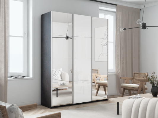 Шкаф-купе 3-х дверный Прайм Зеркало/Белое стекло/Зеркало (Е1)