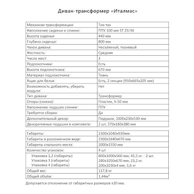 Диван-трансформер Италмас (Аквилон) - за 73 382 руб. в Кемерово. Купите на сайте mebelmarket-kemerovo.ru или по телефону 8(800)505-30-63 уже сегодня! Уточнить наличие, комплектацию, актуальную цену можно бесплатно у менеджера ежедневно. Закажите Диван-трансформер Италмас (Аквилон) до конца акции! Доступна покупка в кредит, рассрочку. Доставим со склада или на заказ.