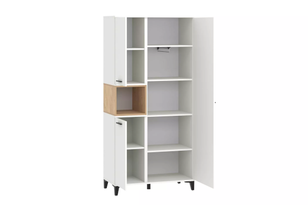 Уникальный шкаф Bergen с контрастной вставкой позволит создать неповторимую композицию мебели для гостиной. Функциональность шкафа заключается в возможности использования как с полками, так и с кронштейн-вешалкой в зависимости от необходимого назначения.