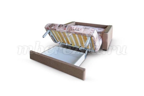 Механизм трансформации «аккордеон» позволяет без усилий разложить диван. Спальное место с ортопедическим основанием для придания телу удобного положения во время сна. Под диваном расположена ниша для постельного белья. Боковины имеют деревянные подлокотники, предохраняющие материал от механического трения. Чехол дивана съемный, периодически его можно стирать.