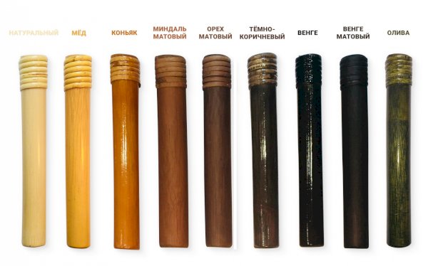 Цвета: натуральный, мед, коньяк, миндаль матовый, орех матовый, темно-коричневый, венге, венге матовый, олива.