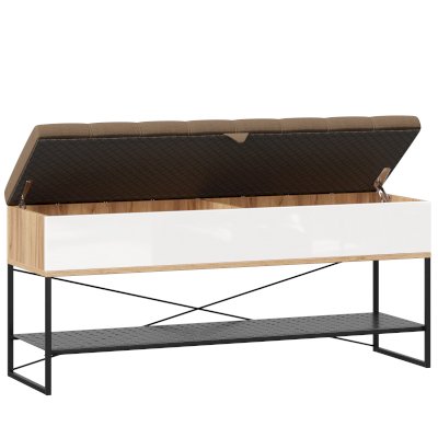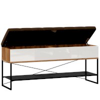 • Крышка (сиденье) откидывается на кронштейнах, под сиденьем короб высотой 150 мм с двумя отделениями для хранения